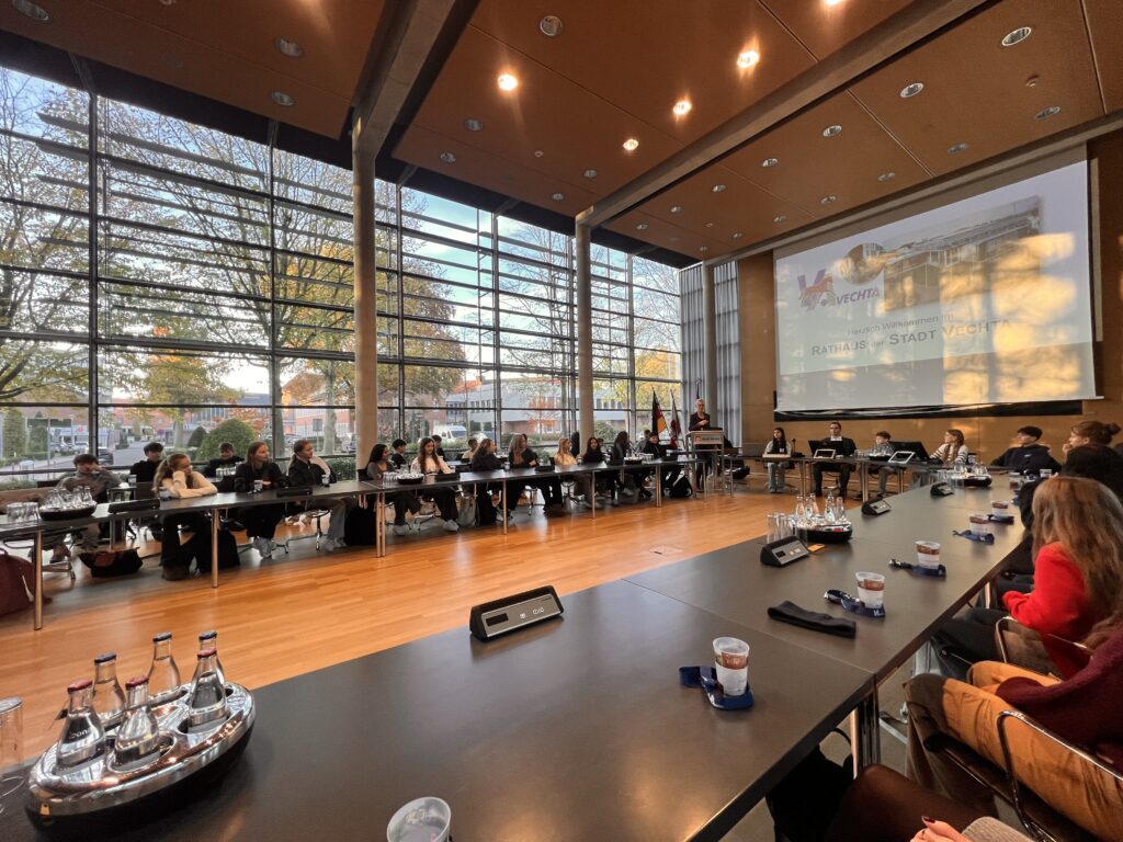 Am vergangenen Montag durften die 8Fb mit Frau Rautenstengel und die 8S mit Frau Kohls erleben, wie Kommunalpolitik wirklich funktioniert – nicht nur auf dem Papier, sondern mitten im Vechtaer Rathaus.