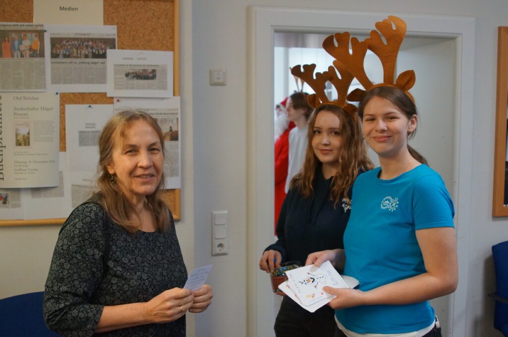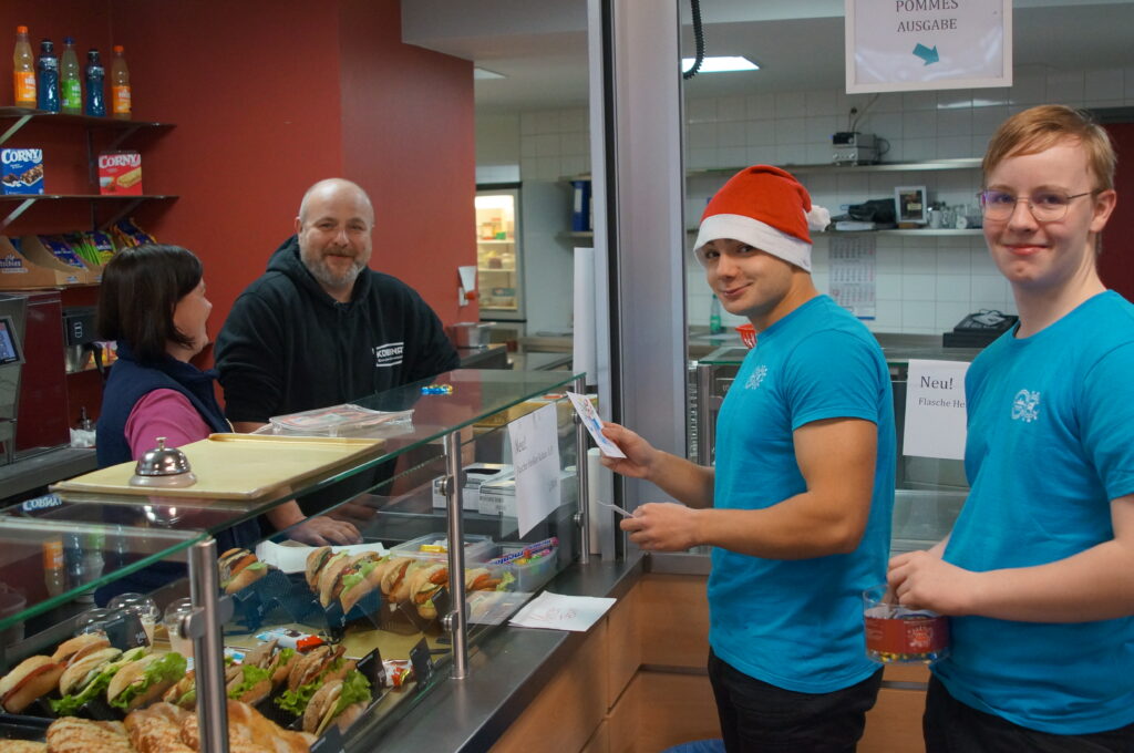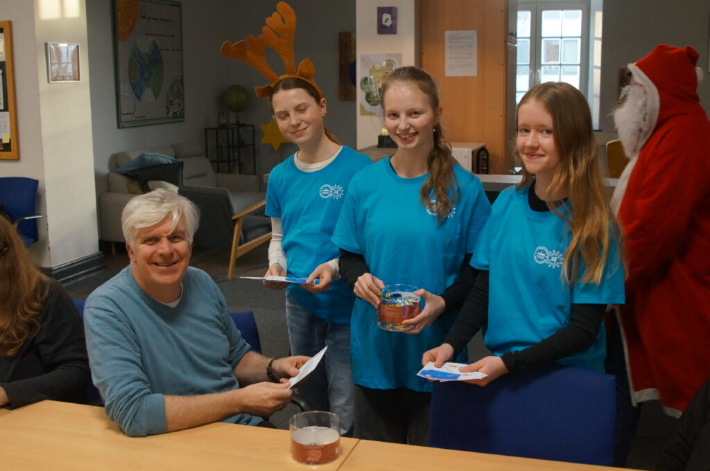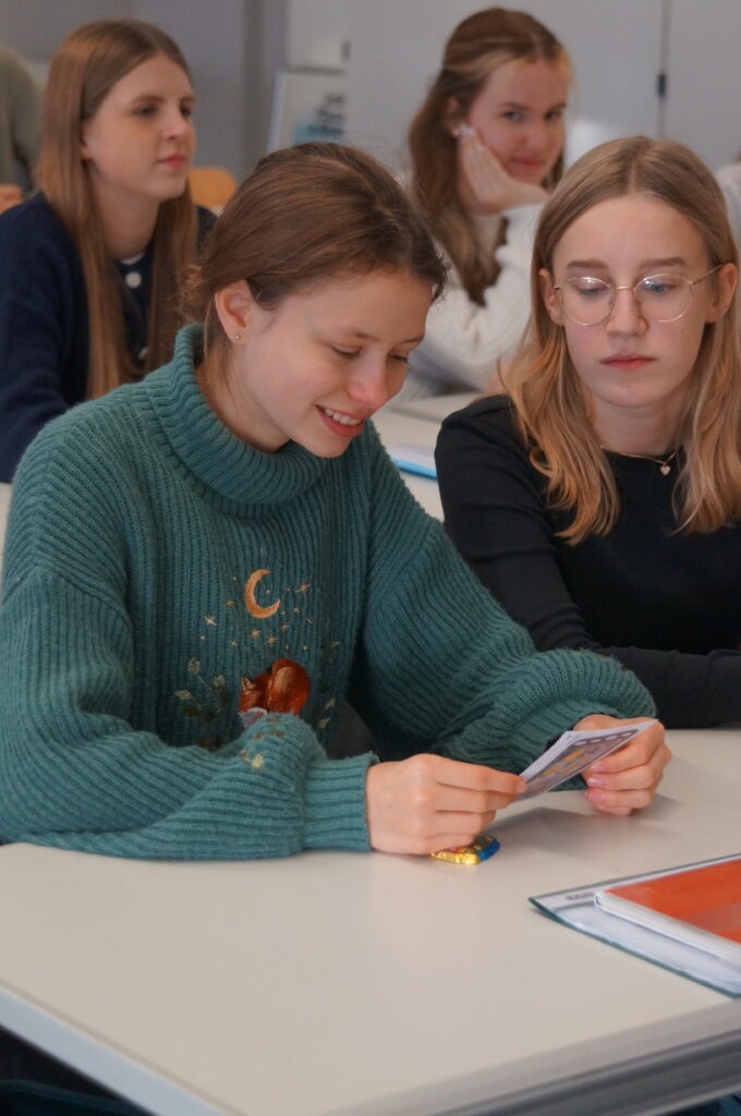 Am heutigen Montag, 08.12.2025, schwärmten traditionell die Mitglieder der Sozial-AG aus, um vielen Mitgliedern der Schulgemeinschaft Grußkarten und Schokolade zu überreichen, und brachten auf diese Weise vielfach Freude. Der Erlös dieser „Süßen Grüße“ kommt wie in den vergangenen Jahren caritativen Zwecken und der Schulgemeinschaft zu. Dem gesamten Vorbereitungsteam und allen Helfer(inne)n sei an dieser Stelle herzlich gedankt!