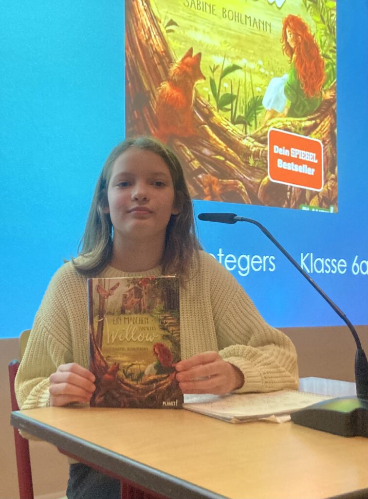 Ella Grotegers (6a), Georg Schlotmann (6b), Henry Appl (6c), Aenne Morthorst (6d), Paul Rolfes (6e), Paula Brockmann (6f) und Enie Sölter(6g) präsentierten nach der Begrüßung durch die Fachobfrau des Faches Deutsch, Frau Hülsmann, zunächst ein Buch ihrer Wahl und lasen eine gut vorbereitete Stelle daraus vor. Die Jury – bestehend aus den Deutschlehrkräften der 6. Klassen (Frau Dzatkowsky, Frau Hartmannn, Frau Rautenstengel, Herrn Bröcker und Herrn von Frommann) – und die 6. Klassen verfolgten die Vorträge gespannt und applaudierten den Klassenbesten ausgiebig.