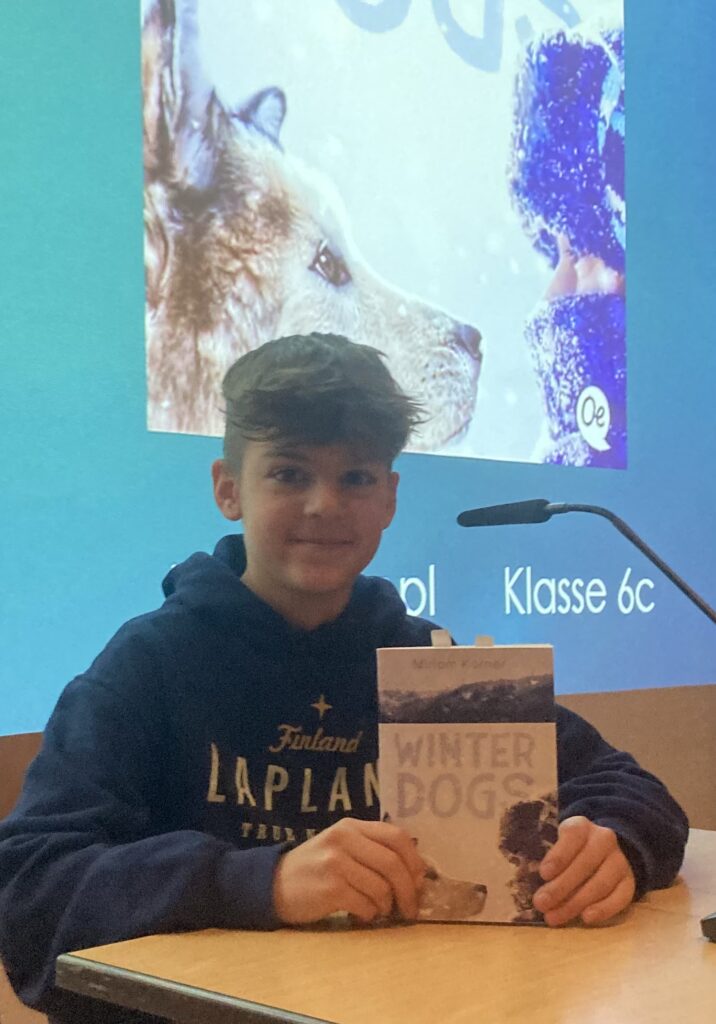 In dem Auszug aus „Winter Dogs“, präsentiert von Henry (6c), ging es um Jeremy, der sich nach einem dummen Streich mit dem Besitzer von Schlittenhunden angefreundet hat und nun unfreiwillig in einer stürmischen Nacht an einem zugefrorenen See übernachten muss.