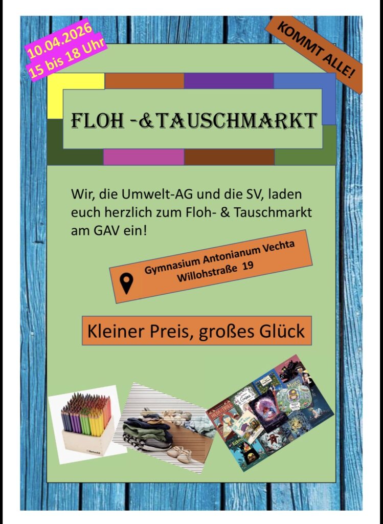 Nach den Osterferien fand an unserer Schule ein bunter Tausch- und Flohmarkt statt, der Schüler, Eltern und auch Lehrer zusammenbrachte. Organisiert wurde die Veranstaltung von der Umwelt AG und der SV. In der Europahalle wurden einige Stände aufgebaut, an denen die Teilnehmer ganz unterschiedliche Dinge anboten. Von spannenden Büchern und unterhaltsamen Spielen über Musikinstrumente bis hin zu Dekorationsartikeln und gut erhaltener Kleidung war für jeden etwas dabei.
