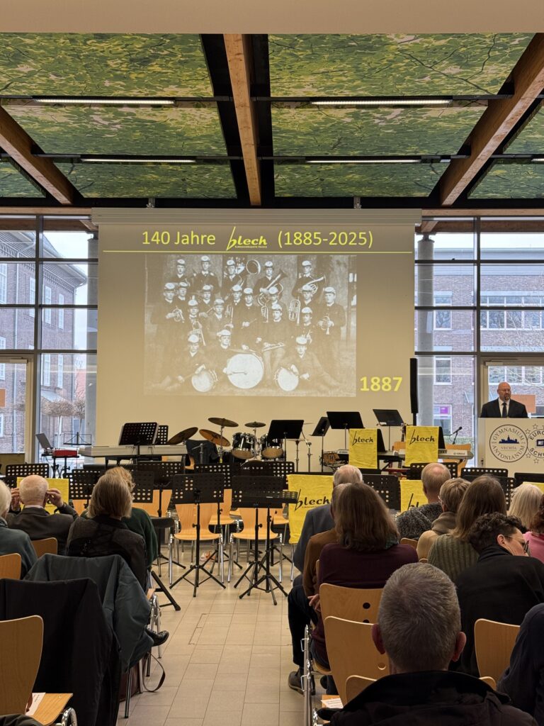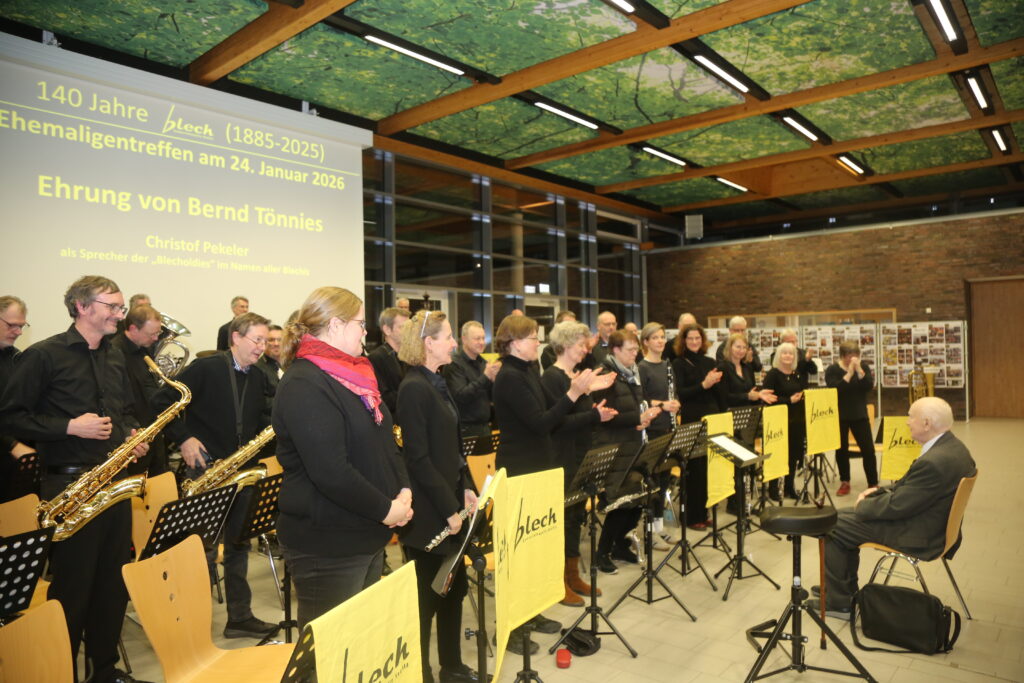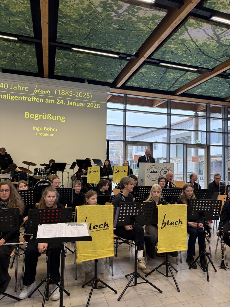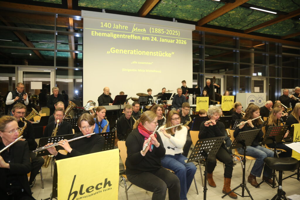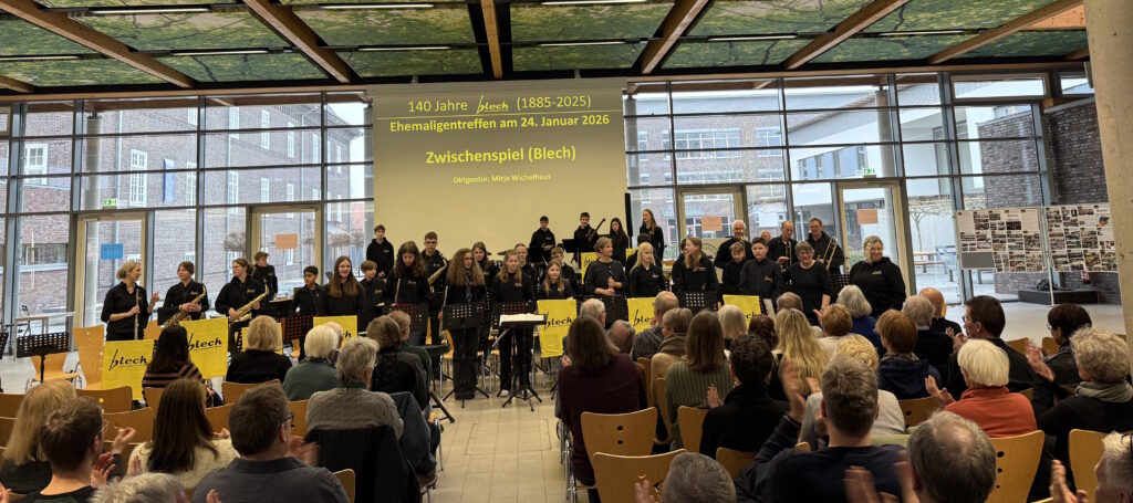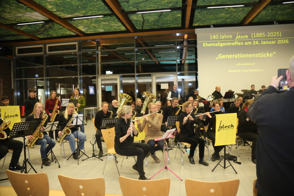 Anlässlich des 140-jährigen Bestehens des „Blech“ wollen wir diese lange Tradition im Rahmen eines Ehemaligentreffens am 24. Januar 2026 in der Europahalle des GAV angemessen würdigen. Geplant ist nicht nur eine Zusammenkunft ehemaliger und aktueller „Blechis“ sowie ehemaliger und aktueller musikalischer Leitungen und Protektoren, sondern auch das gemeinsame Musizieren. Wir freuen uns jetzt schon auf Darbietungen der „Alt-Blechis“ und der „Jung-Blechis“, die vielleicht auch das eine oder andere Stück gemeinsam präsentieren können. Wie wollen auch ehemalige musikalische Leitungen ehren, allen voran Bernd Tönnies, der in Aussicht gestellt hat, die Alt-Blechis noch ein letztes Mal zu dirigieren. Wir können im Anschluss in gemütlicher Atmosphäre bei Speis und Trank in Erinnerungen schwelgen, von legendären Blechfahrten berichten und andere Erfahrungen austauschen.