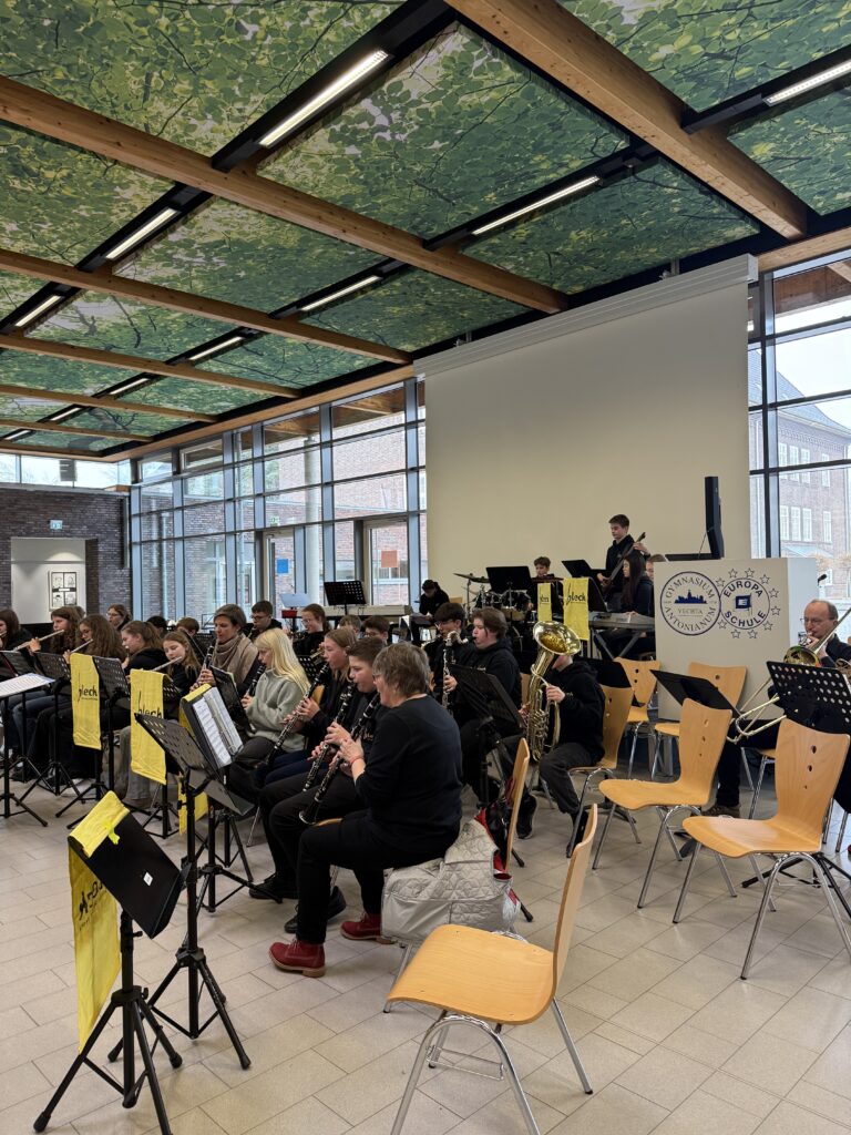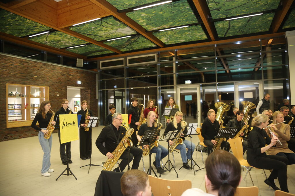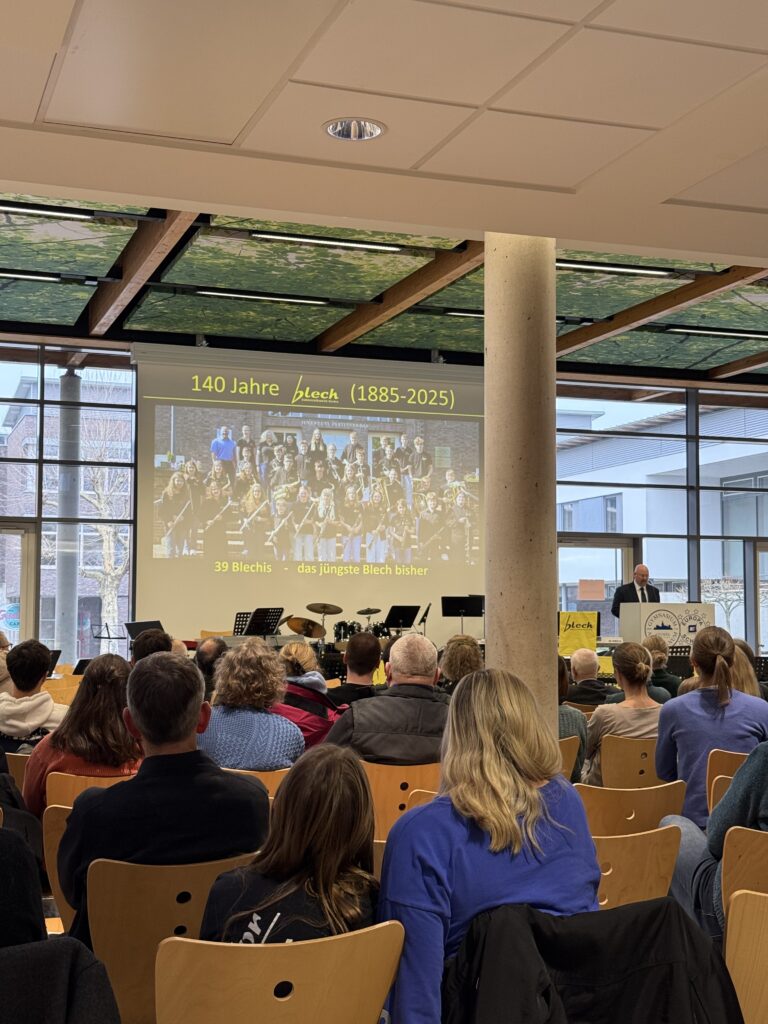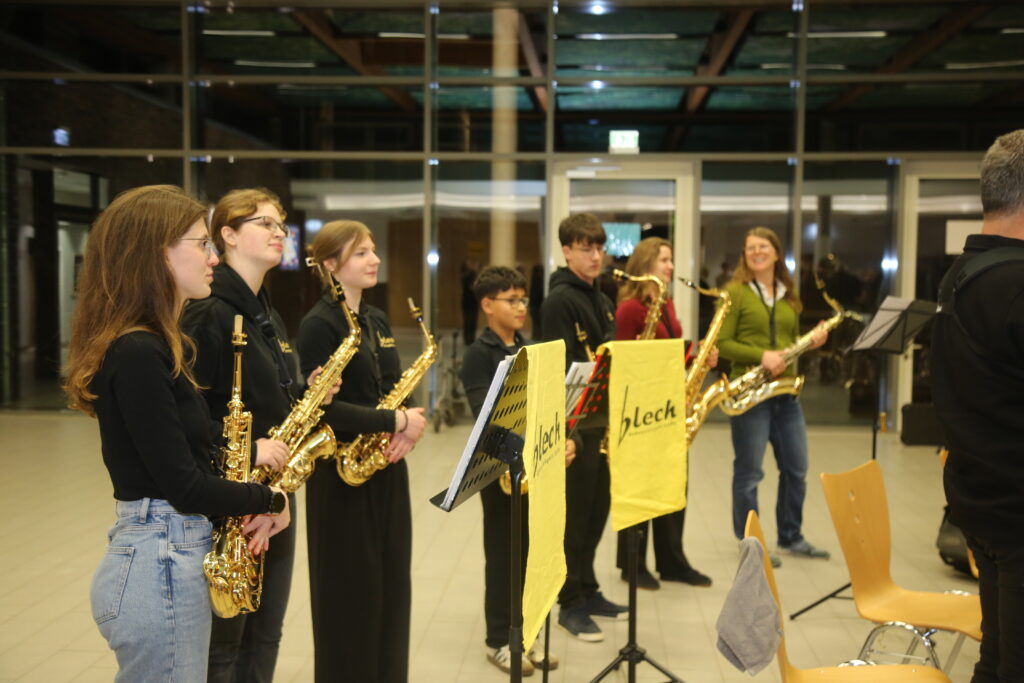 Am 10. Dezember 2025 hatte das Blech wie jedes Jahr erneut einen Einsatz beim Weihnachtskonzert. Vor einem großen Publikum in der Europahalle des GAV spielte die junge Truppe unter der Leitung von Mirja Wichelhaus und mit Unterstützung von Miriam Humphreys neben weihnachtlichen Stücken auch ein Heavy-Metal-Medley, das beim Publikum genau so gut ankam wie die besinnlichen Stücke. Daneben gab es noch Beiträge von Solisten, der Chorklassen und der Schulband „Fungafop Blue“. Musikalisch so schön eingestimmt kann Weihnachten kommen!