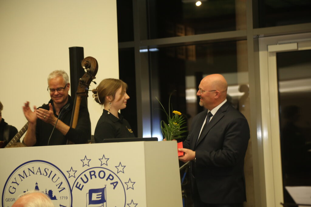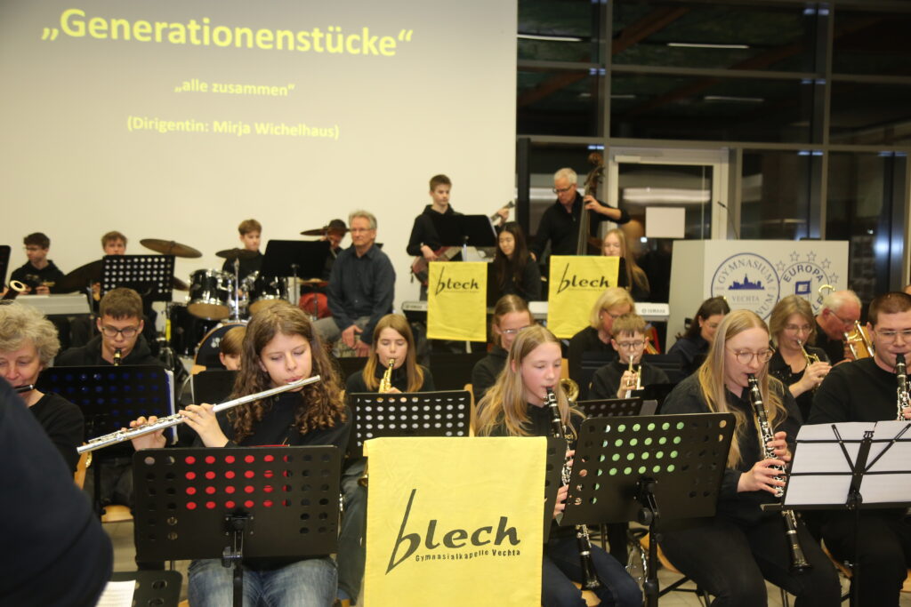 Der Rotary Club Vechta hatte 2024 entschlossen, einen Schulband-Contest zu veranstalten. Im Spätherbst 2024 hatte eine Delegation des Rotary Clubs begonnen, mehrere Orchester und Musikgruppen verschiedenster Schulen im Kreis, die sich für den Bandcontest beworben hatten, zu besuchen und zu sichten. So auch unsere Schulband „fungafop Blue“ und das „Blech“. Zur Freude aller konnten sich beide Gruppen für das Finale des Bandcontests qualifizieren. Austragungsort des Bandcontests war das GAV. Der Rotary Club hatte keine Kosten und Mühen gescheut, um in der Europahalle eine professionelle Umgebung zu schaffen, in der sich alle 5 Gruppierungen vor einem größeren Publikum und der Jury beweisen konnten. Die Konkurrenz war stark und es gewann letztlich das Orchester des Gymnasium Bersenbrück. Aber selbst die Qualifizierung zum Finale hatte sowohl dem Blech als auch fungafop ein Preisgeld in Höhe von 500,- Euro beschwert. Das Blech hat sich davon ein neues Sofa für den Blechraum gekauft.